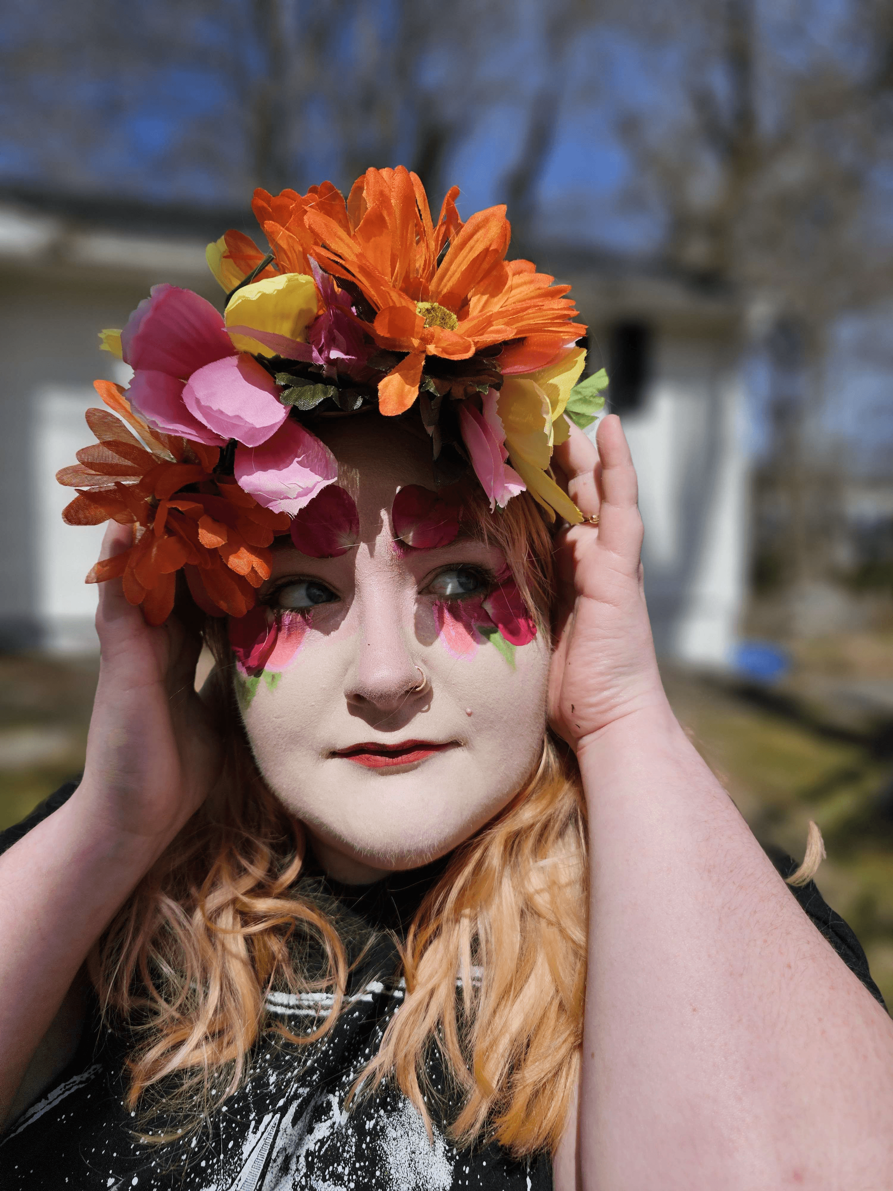 - Fake plants, petals, mushrooms, coral, branches, thorns, vines, moss or flowers on skin/face/body