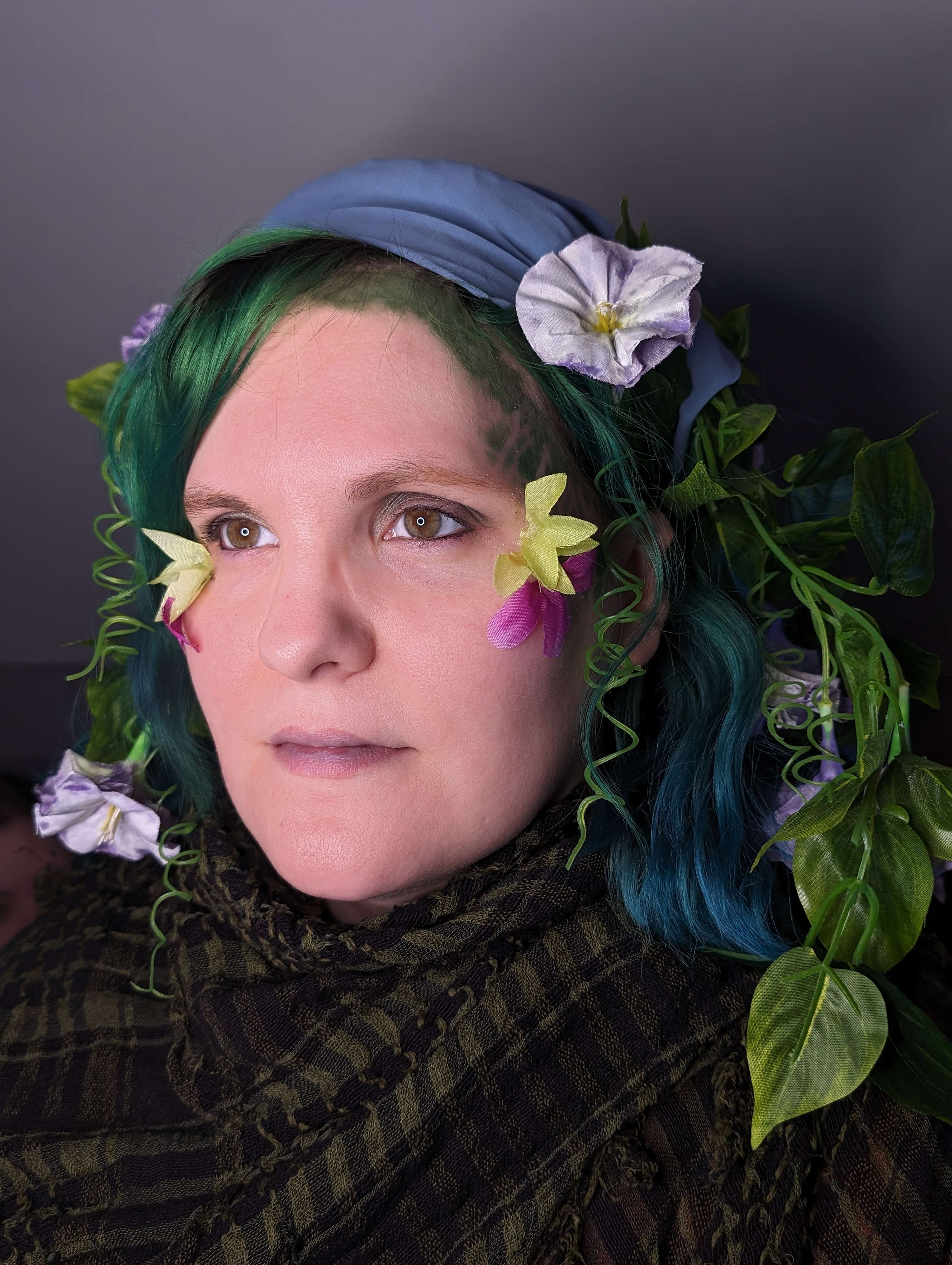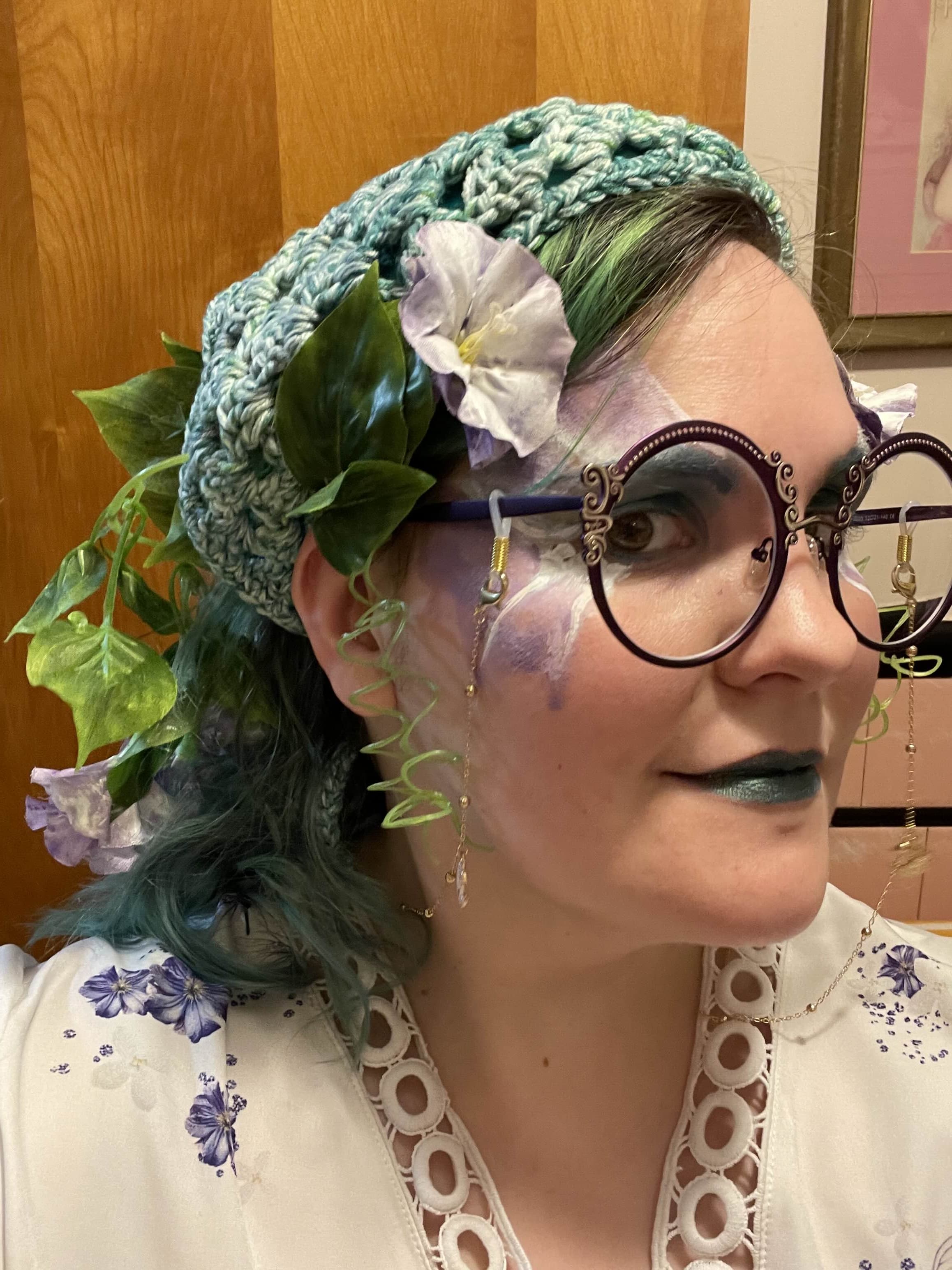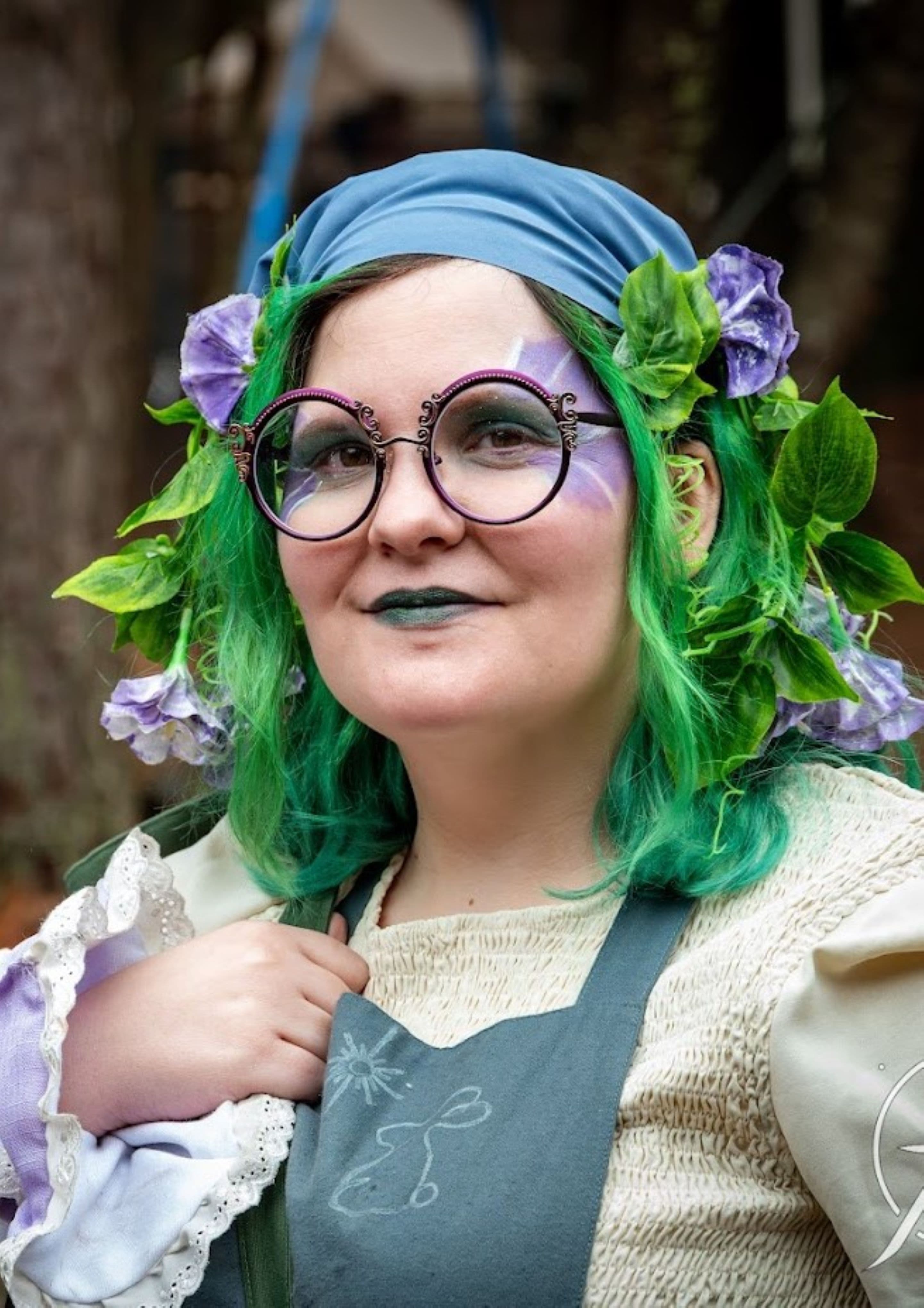 - Vines and flowers in hair and costuming