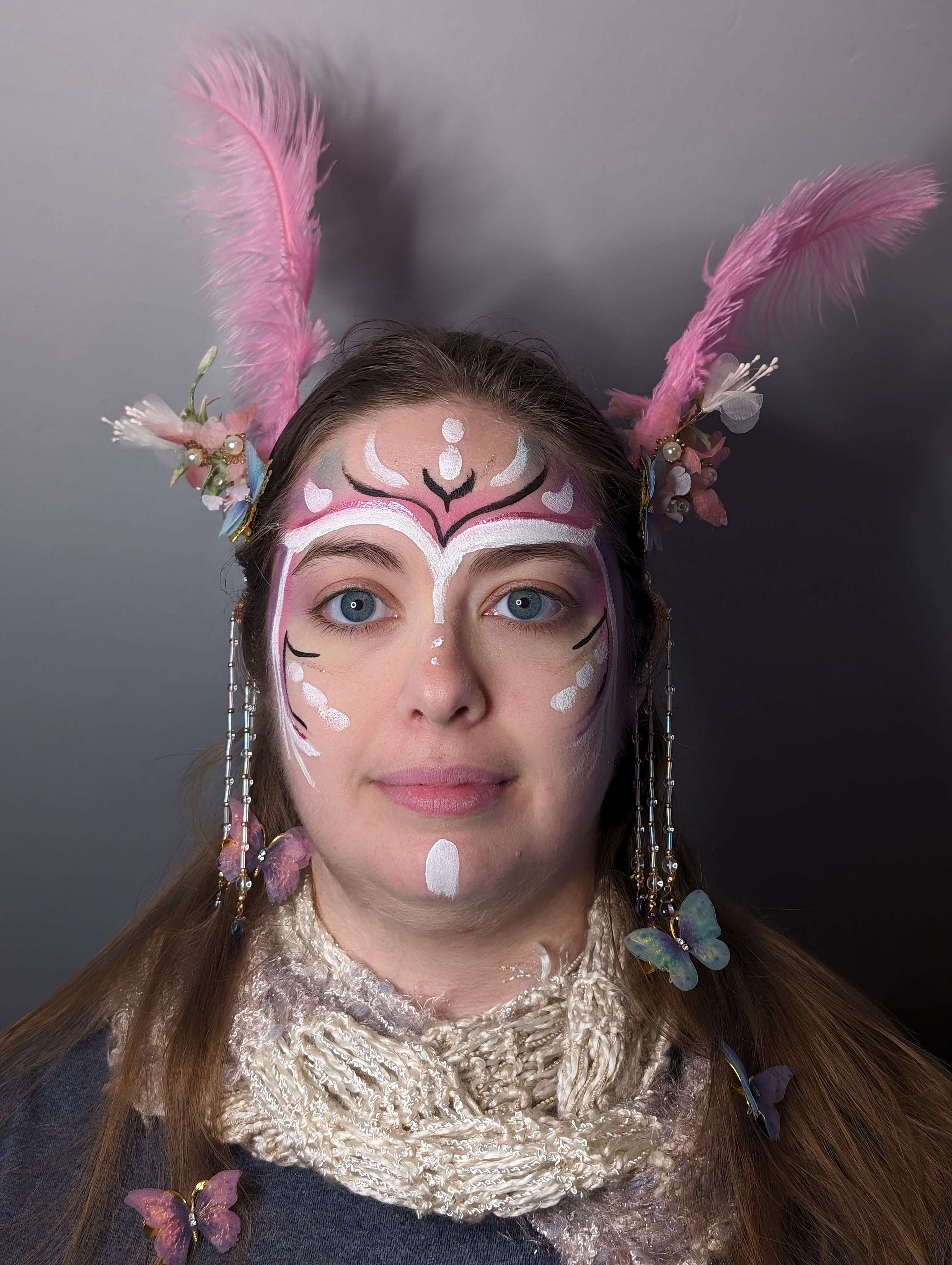 - Facial make up in colors matching the moth type