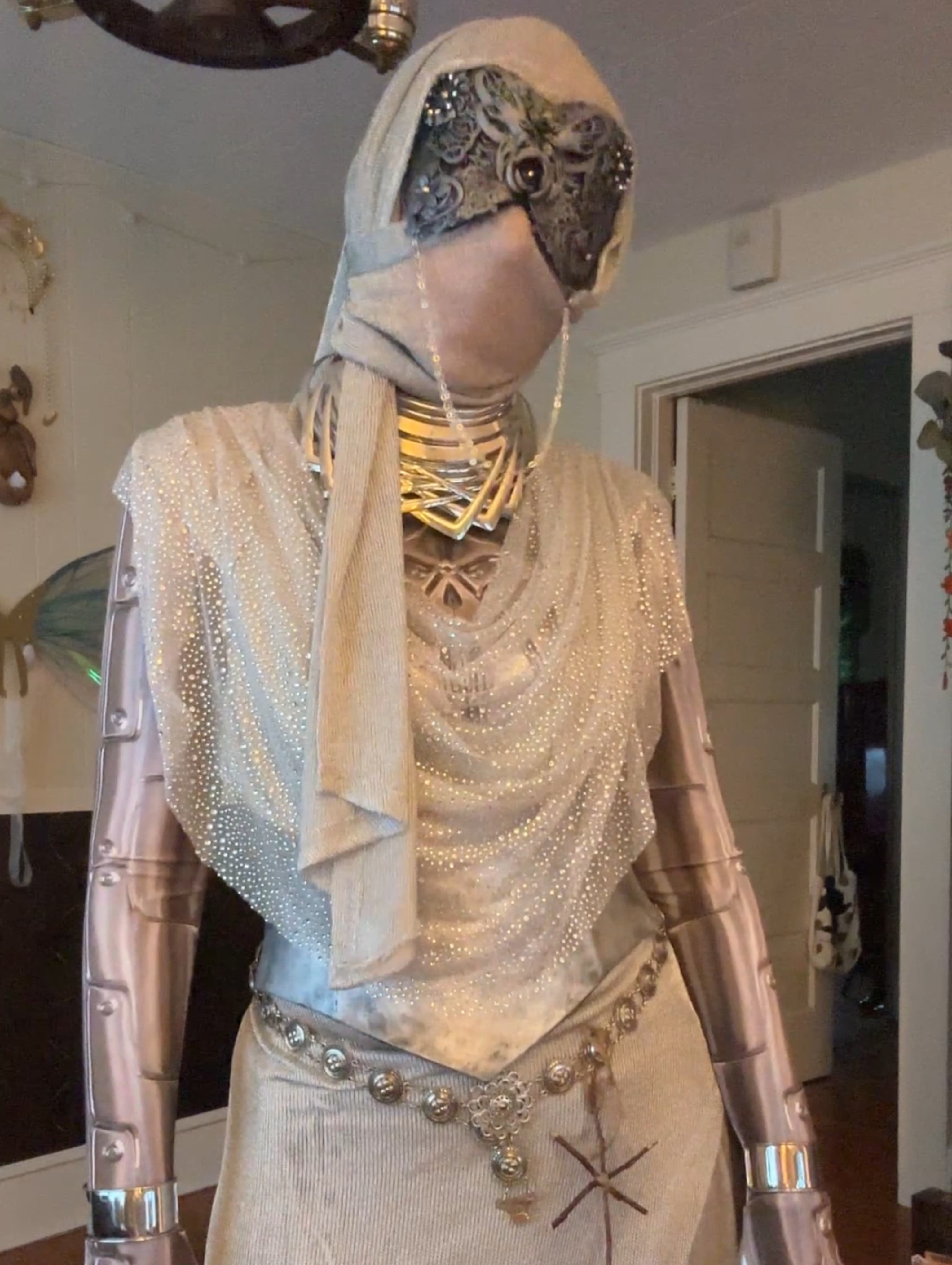 Wearing big or heavy armor can help obscure or hide any possible exposed skin and convey the soulforged concept