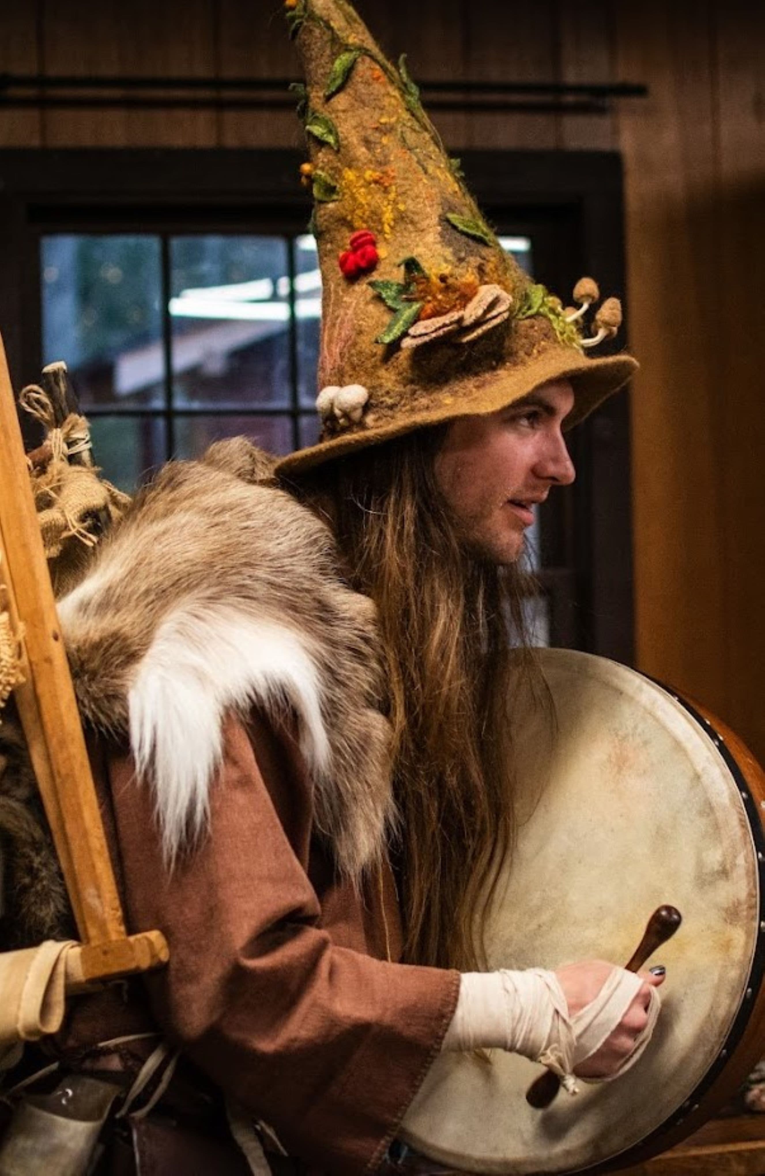- Vines and flowers in hair and costuming